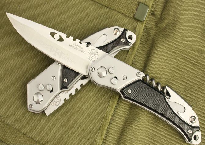 象牌多功能弹跳刀A型 全长:230mm 刃长:110mm 刃宽:26mm 闭合:130mm 刃厚:2.4mm