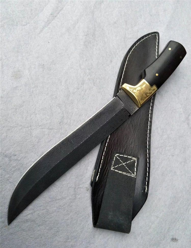 全长:34cm 刃长:23cm 刃宽:3.3cm (最宽处) 刃厚:0.58cm 刃材:新型波纹钢,手工锻打,档次相当于大马士革钢,不刮花,不变色。 硬度:58HRC 表面:不规则波纹,表面处理方法属于商业秘密 柄材:名贵黑檀木+纯铜 柄长:12cm 刀重:590克 总重:830克(含包装物) 品质:高品质,刃口非常锋利 其他: 刀身贯穿至刀柄末端,用铜钉固定 附件:牛皮刀套