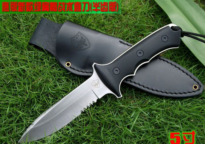 鹰版新款绿扁帽战术直刀(5寸半齿版)