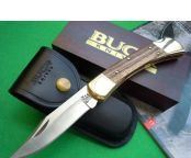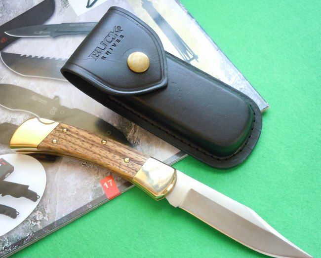 巴克110双铜头折刀 全长:22 刃长:9.5 刃材料:进口440C(美产) 刃厚:0.3宽刃口特锋利 硬度:59-60(实测硬度) 手柄:一体黄铜+实木(铜铆钉凸出,有效防滑)