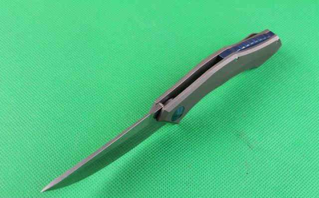 柄 材:手柄电脑椤成型G10手柄、底骨TC4钛合金蓝色阳极电镀处理。 刀 夹:TC4钛合金