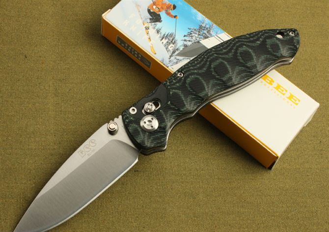 BEE-EL04MCT折刀 全长:20.2cm 刃长:8.6cm 柄长:11.8cm 刃厚:3.2mm 刃宽: 3cm 刃材: 8Cr13 柄材: 米克塔 硬度: 57HRC 净重:135克 毛重:140克 表面处理:手工砂光 锁型:轴锁