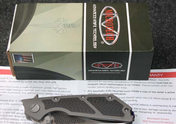 微技术DOC(死亡接触) 全长:228mm 刃长:90mm 柄长:130mm 刃宽:36mm 刃厚:5.0mm 刃材:D2(深冷处理) 重量:200g 硬度:58-60HRC 表面:拉丝+镀钛 柄材:TC4钛合金+碳纤 刀夹:TC4钛合金 锁型:分体插入锁杆式线锁。 螺丝:所有螺丝420不锈钢、硬度HRC45、全CNC精雕加工。 结构:分体插入锁杆式线锁结构、锁刀接触镶嵌合金粒、陶瓷定位珠、内置平面滚针轴承垫片。 其他:配彩合和出世纸