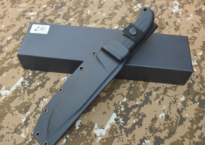 刃材:军工D2 全长:312mm 刃长:191mm 柄长:121mm 刃厚:6.2mm 刃宽:41mm 表面:沧桑石洗 硬度:HRC59-60 (真空油淬热处理) 手柄:G10+表面防滑处理 刀鞘:进口Kydex鞘 包装:黑色礼品盒 刀重:约375G 总重(包括包装盒等):约700G