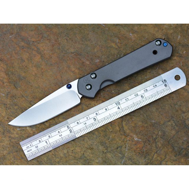 随风版CR小沙折刀 全长:174mm 折合:101mm 刃长:74mm 刃宽:22mm 刃厚:3mm 柄厚:10mm 重量:130g 刃材:德国D2 硬度:59-61HRC 刃面:石洗 柄材:日本进口钛合金TC4(表面喷砂处理) 定位珠:德国FAG陶瓷定位珠 刀夹:弹簧钢特制 所有轴件440不锈钢硬度HRC50 所有螺丝420不锈钢硬度HRC45 钛合金锁定面做热处理硬度HRC43 黄铜垫片,精密铜油槽轴套设计,可有效增加开合顺滑度
