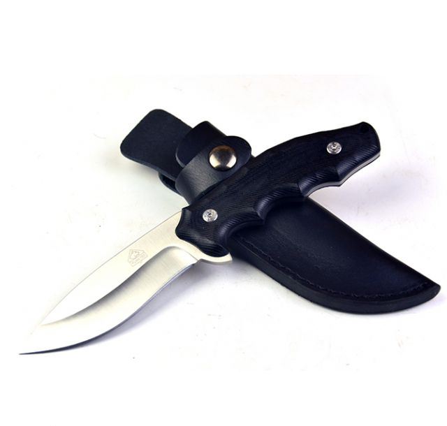 彪马PUMATEC小直刀 全 长:220mm 刃 长:100mm 柄 长:120mm 刃 宽:32mm 刃 厚:4.5mm 刃 材:9Cr18Mov 重 量:253g(含包装) 硬 度:59HRC 表 面:砂光 柄 材:黑G10 锁 型:定锁 其 他:配牛皮套