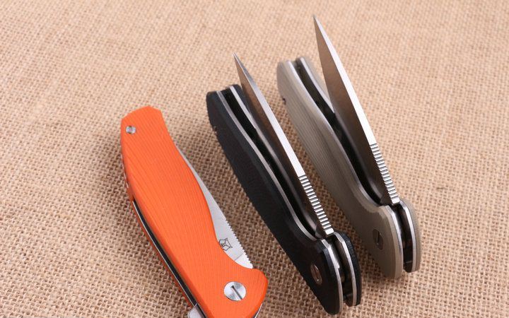 熊头PA90S钢锁折刀三色 全 长:22.1cm 刃 长:9.5cm 柄 长:12.8m 刃 宽:3.0cm 刃 厚:3.mm 刃 材:5CR15MOV 重 量:230g (含包装物) 硬 度:56-58HRC 表 面:精细沙光 柄 材:手柄G10和钢片经CNC精雕加工 刀 夹:不锈钢 锁 型:线锁 结 构:线锁结构,内置平面滚针轴承垫片