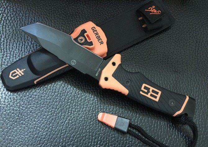 戈博BG6终极生存刀(方头全刃) 全长:24.5cm 刃长:10.5cm 刃厚:5mm 刃材:AUS-8A 柄材:尼龙+橡塑(手感柔软舒适、防滑) 硬度:58Hrc 表面:钛离子 刀套:ABS鞘+尼龙套 刀重:240g 总重:470g 刃区:机械刃/切削 配件:打火棒、磨刀石,哨子,原装彩合,说明书。
