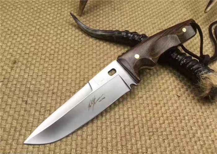 全 长:25.5CM 刃 长:12.5CM 柄 长:12CM 刃 宽:4.0CM 刃 厚:0.5CM 刃 材:9Cr18M0V 重 量:480g(含包装) 硬 度:59HRC 表 面:精光 柄 材:钢一体柄+进口鸡翅木 锁 型:定锁 其 他:配真皮套