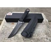 百炼新款G-STRONG直刀 总长:27cm 刃长:13cm 刃厚:6MM 刃宽:3cm 钢材:D2钢 硬度:6HRC真空热处理 表面处理:灰黑石洗 柄材:黑色G10 刀套:进口K鞘套 包装:黑色礼盒包装