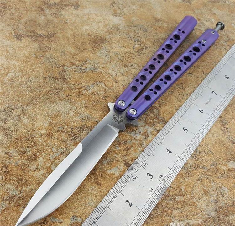 当前位置: 刀网 > 精美小刀 > 蝴蝶甩刀 > 经典紫色钛柄蝴蝶甩刀BM42复刻版