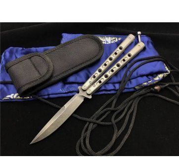 钛柄BM62蝴蝶甩刀黑刃灰柄
