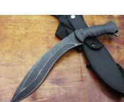 松田菊男瘦身狗腿弯刀(黑版) 全长:38.8CM 刃长:24.5CM 刃材:7Cr17 硬度:59HRC 刃厚:0.58CM 刃宽:4.3CM(最宽处) 柄长:14CM 柄材:G10 刀鞘:尼龙套(可绑腿) 重量:780g