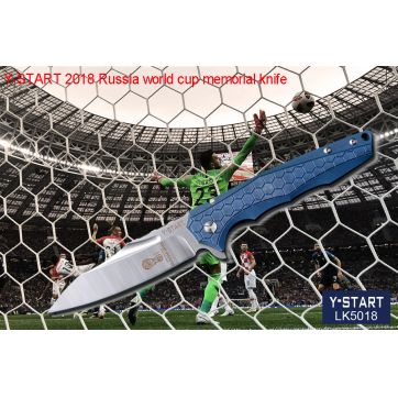 随风版(Y-START)2018俄罗斯世界杯纪念折刀 全长:234mm 刃长:99mm 手柄长:135mm 刃厚:4.0mm 刃宽:27.5mm 刃材:VG-10(真空热处理) 表面处理:石洗后数控磨 硬度:HRC60-61 手柄材料:钛合金(TC4)陶瓷轴承 净重:150g 包装:褐色小盒 LK5018 VG10刀刃