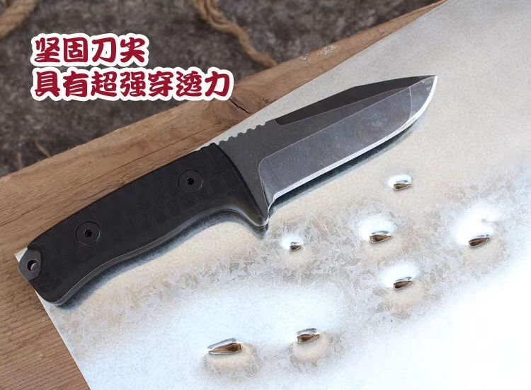 百炼冷刃DC53钢直刀 总长:23cm 刃长:12cm 刃厚:6mm 刃宽:3.6cm 钢材:进口DC53钢 硬度:61-63HRC,真空深冷热处理 柄材:战术纹G10,手感防滑效果很好 刀套:进口战术K鞘 真材实料进口DC53钢,硬度达到62-63HRC