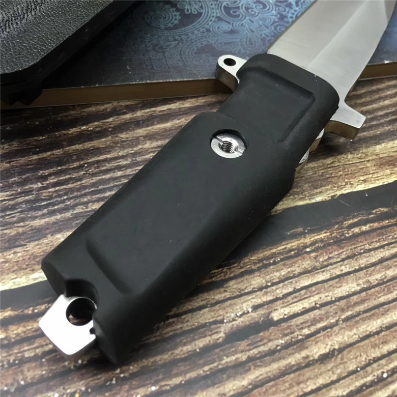 极端武力凌神直刀白刃 全长:22CM 刃长:11CM 刃厚:0.5CM 刃材:D2 刃宽:3CM 硬度:58HRC 柄材:热塑性弹性橡胶 刀鞘:黑色K鞘 重量:287.5克