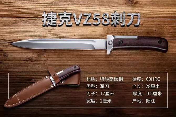 新品上市捷克VZ58刺刀40年代末和50年代初,捷克斯洛伐克曾努力为本国军队研制并生产了多种型号的半自动/自动步枪。这些枪上配用的刺刀也有多种,如ZK420式、VZ502式、VZ/52式等。这些步枪及其刺刀性能并不很好。后来,又设计了外表与前苏联的AK步枪有些相似的VZ/58式突击步枪,同时也为该枪研制了独具特色的VZ/58式刺刀,用以取代VZ52/57式步枪装备前捷克斯洛伐克军队,并在市场上销售。