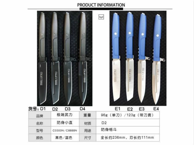 极端武力二代震怒之日直刀 全长:236cm 刃长:111cm 柄长:119cm 刃厚:约4.0mm 刃宽:21mm 刃材:D2 柄材:尼龙+玻纤 硬度:58HRC 净重:96克 毛重:123克(含刀套) 表面处理:钢本石洗 包装:刀套