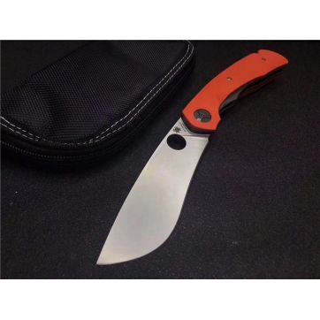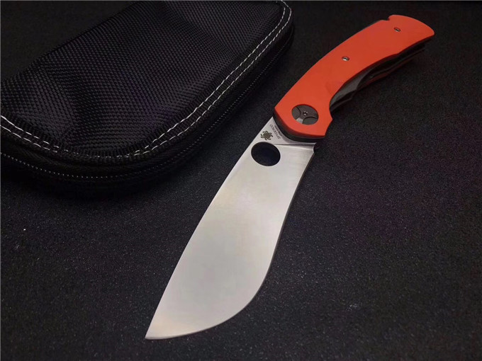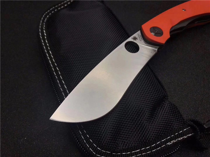 定制版蜘蛛C239折刀 全长:23.5cm 闭合:13cm 刃长:9.5cm 刃厚:4mm 净重:210克 刃材:D2钢钢,热处理 硬度:约60HRC 表面:砂光处理 柄材:钢片+G10 配钢珠滚珠轴承,顺滑度非常好