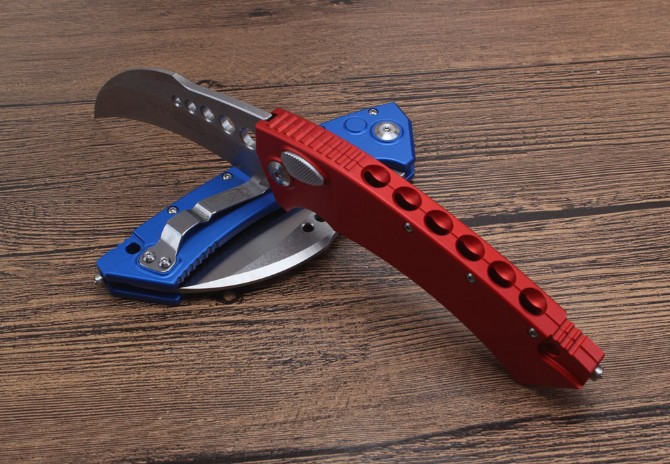 微技术横出弹簧爪刀 全长:23cm 刃长:10cm 刃厚:4mm 刃宽:3.5cm 柄长:13.5cm 刃材:9Cr13不锈钢 硬度:58HRC 净重:148g 毛重:206g(含包装) 表面:CNC数控磨 柄材:铝合金,CNC电脑锣,钨钢尾锥撞头 锁闭:横出弹簧