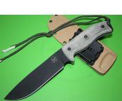 小鲁工E6(米卡塔柄黑砂版) 全 长:29.5cm 刃 长:16.2cm 刃 厚:4.5mm 刃 材:DC53 柄 材:米卡塔 硬 度:59Hrc 表 面:金属拉丝 刀 套:K鞘 净 重:320g 工 艺:水磨刃/切削 类 型:中型